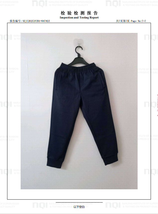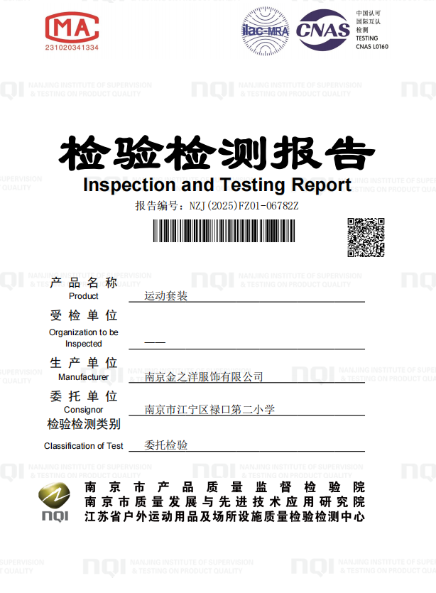 禄口第二小学学生校服(运动装)二次送检报告
