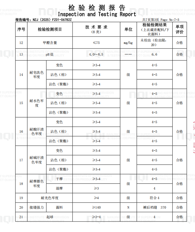禄口第二小学学生校服校服厂送检检测合格报告