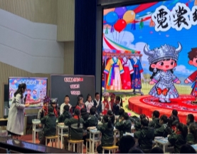 随后,南京市竹山小学郭淼老师执教《我们都是中国人》第一课时,郭老师以生动有趣的方式引领孩子们走进了一场别开生面的身份认同之旅。课堂从“击鼓传花”游戏切入,孩子们在欢声笑语中感知“我们拥有共同的家——中国”。大家化身“小小美食家”,分享身边的少数民族风味;又作为“舞蹈体验官”,身着各式民族服装,自信展示多彩的民族文化,感受不同民族的舞姿韵律。接着,走进“民族英雄馆”,在英雄故事的洗礼中,深化了五十六个民族一家亲的情感认同。整堂课环环相扣,在具身体验中筑牢“我是中国人”的身份认同。